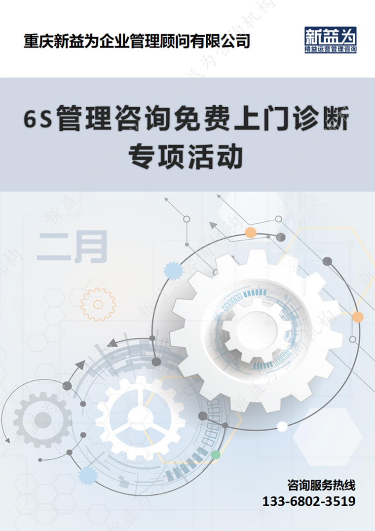 “競爭在市場,競爭力在現(xiàn)場”!面臨經(jīng)濟(jì)轉(zhuǎn)型危機(jī),越來越多的企業(yè)意識到6S管理的重要作用!中國制造業(yè)如何跨越危機(jī)、彎道超車,如何夯實管理基石,煉好內(nèi)功,以健康的體魄從容應(yīng)對外部市場的風(fēng)風(fēng)雨雨,將是未來中國制造業(yè)的一個主旋律。為此,新益為特此開啟6S管理咨詢免費(fèi)上門診斷活動,旨在幫助企業(yè)打造卓越的現(xiàn)場,優(yōu)化工作環(huán)境,培養(yǎng)一批骨干,為企業(yè)持續(xù)發(fā)展奠定基礎(chǔ)。